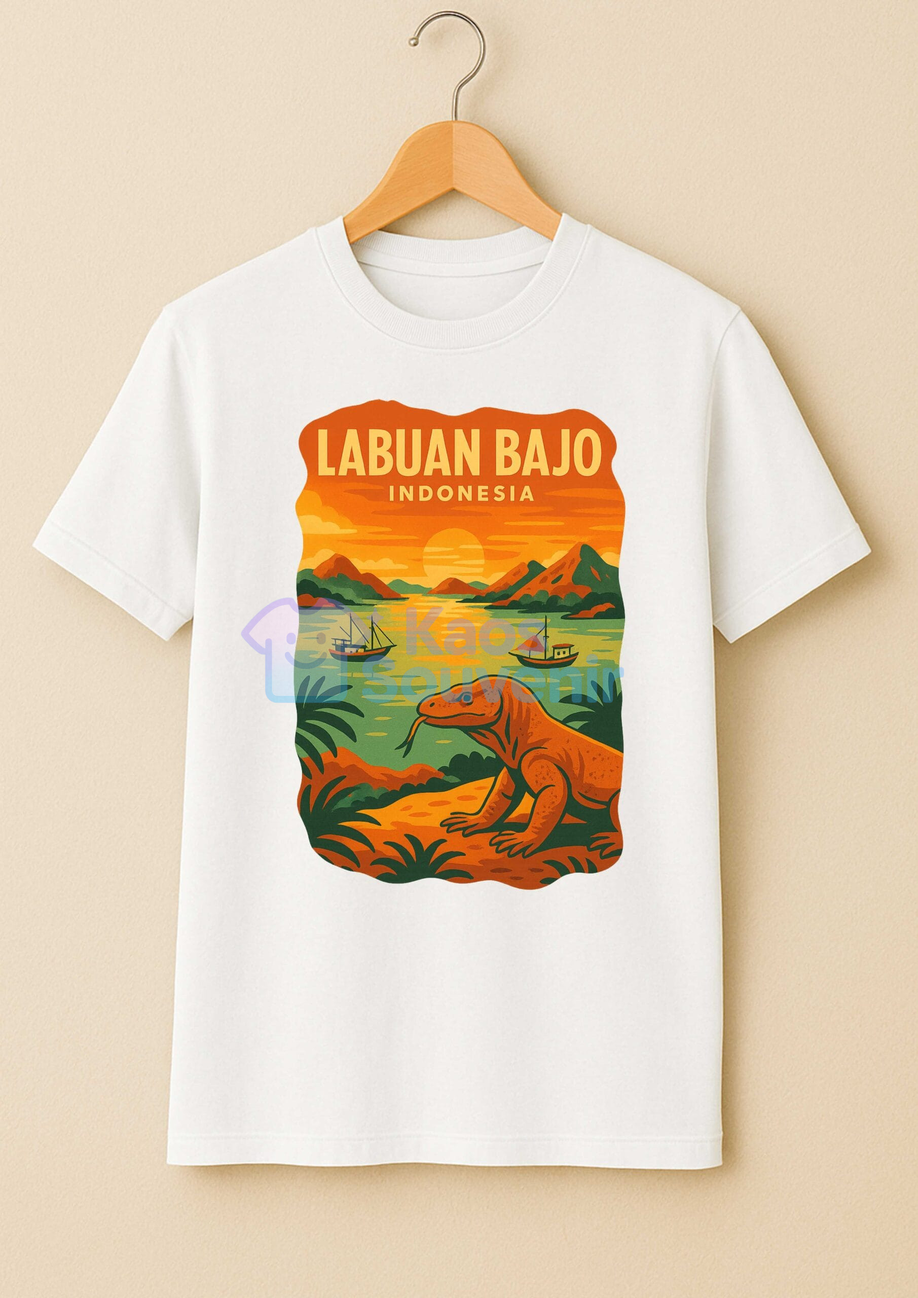 Kaos premium bertema Labuan Bajo dengan ilustrasi komodo & phinisi. Bahan adem, halus, sablon tajam dan awet. Desain eksklusif—cocok buat hadiah & koleksi. Beli sekarang!